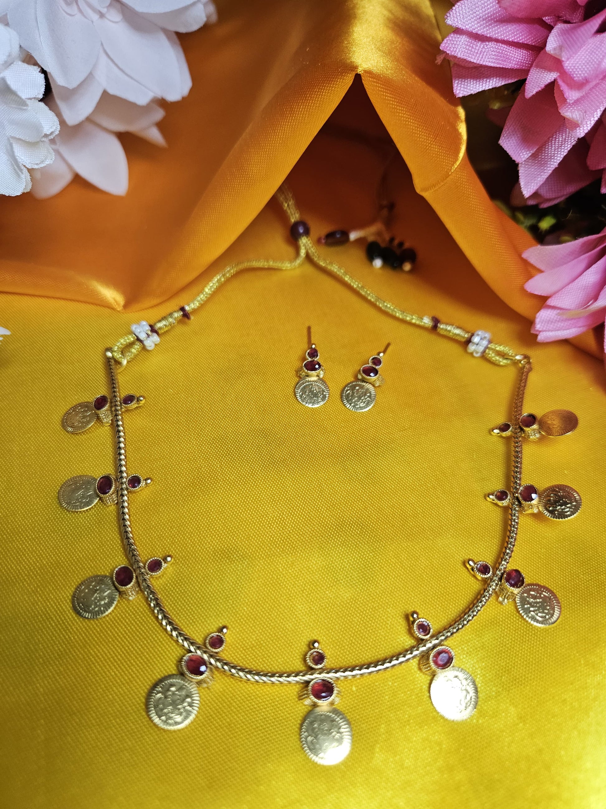 Kashi Coin Mala Set – Timeless Temple Jewellery (Blue,red and pearl stone)